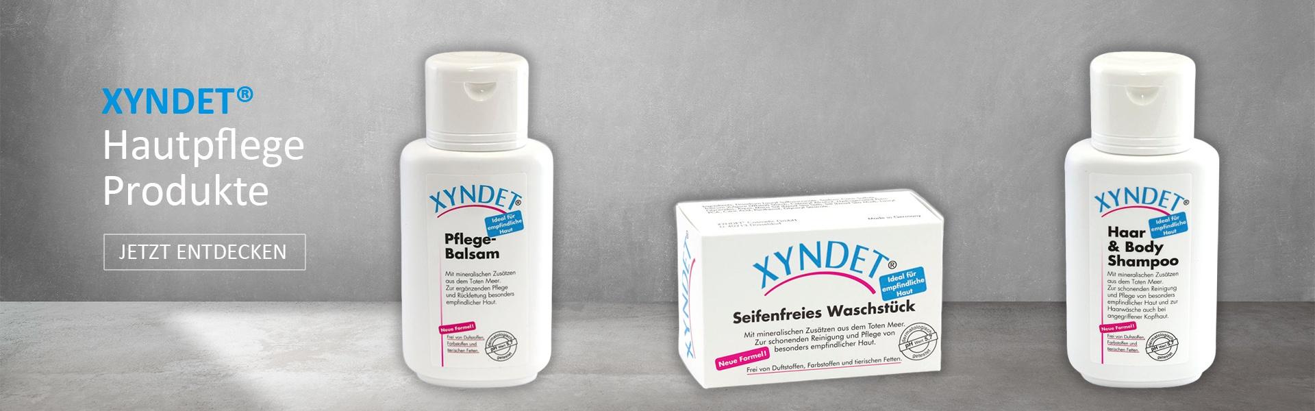 Xyndet® Körperpflegeprodukte – Die schonende Pflege für deine empfindliche Haut mit mineralischen Zusätzen aus dem Toten Meer: XYNDET® Hautpflegeprodukte sind speziell für trockene, schuppende und empfindliche Haut sowie zur Intervallpflege bei Hautproblemen wie Neurodermitis, Akne, Schuppen und Schuppenflechte entwickelt worden. Egal ob unseren XYNDET® Pflege-Balsam, XYNDET® Seifenfreies Waschstück oder XYNDET® Haar & Body Shampoo – Xyndet® ist die erste Wahl für die schonende Pflege empfindlicher Haut!